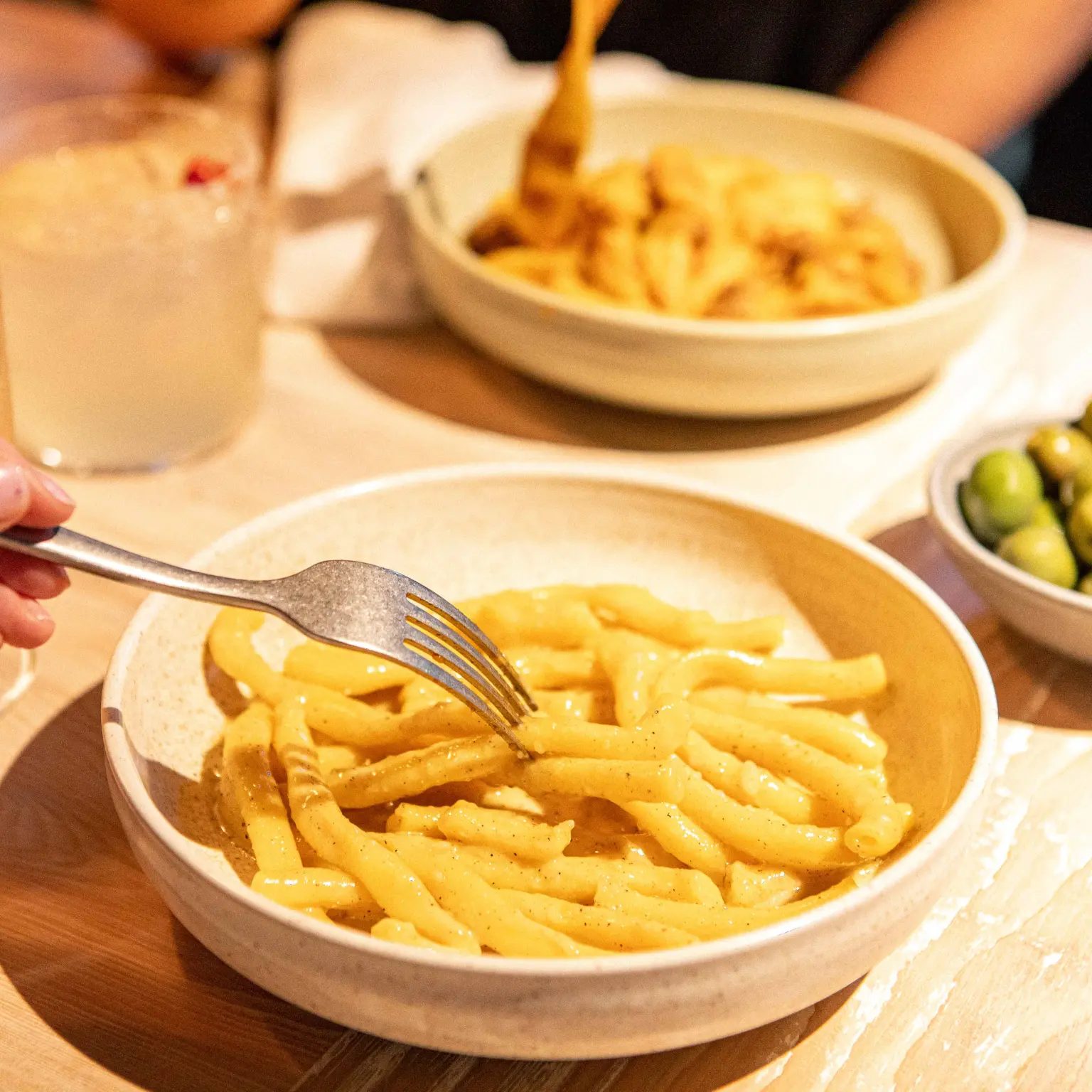 Offer valid 3pm–5pm on Saturday, 25th October at Noci Richmond, Islington and Battersea, while stocks last. One portion of Cacio e Pepe per person with the purchase of an additional full-price small plate, bowl of pasta, large plate or dessert – excludes olives, focaccia and drinks. Not valid with any other promotion.